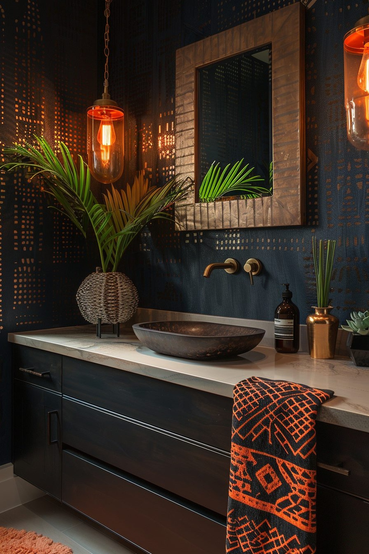 Designing an Afrohemian bathroom involves selecting a color palette that reflects both African heritage and bohemian flair.