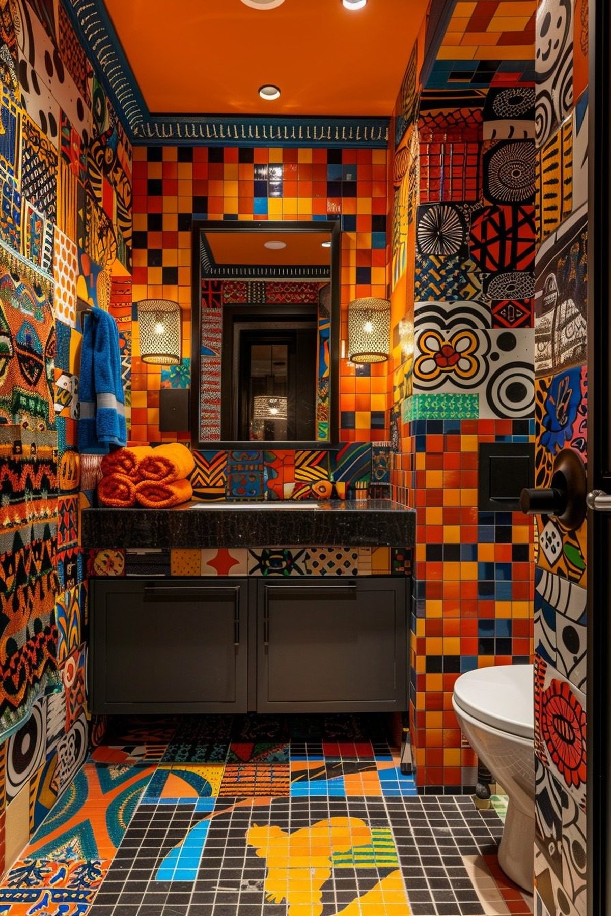 This bathroom is ideal for those who want a space that reflects their creative spirit and love for color.