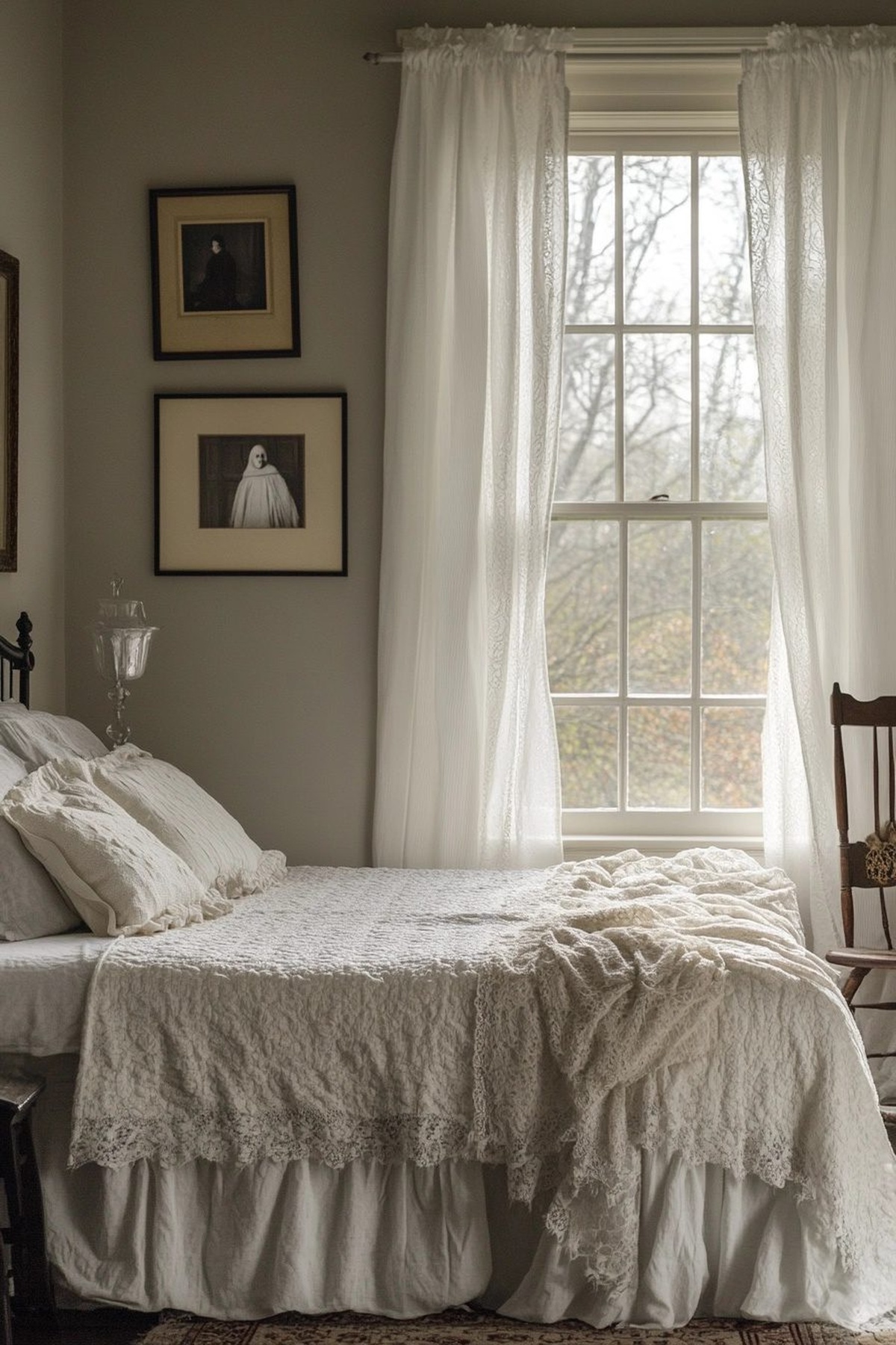 This style often includes rustic textures alongside delicate details, such as lace curtains next to rough wooden beams or iron candle holders paired with leather chairs. Decorations may draw from old folklore, religious symbols, or eerie legends, adding a sense of mystery.