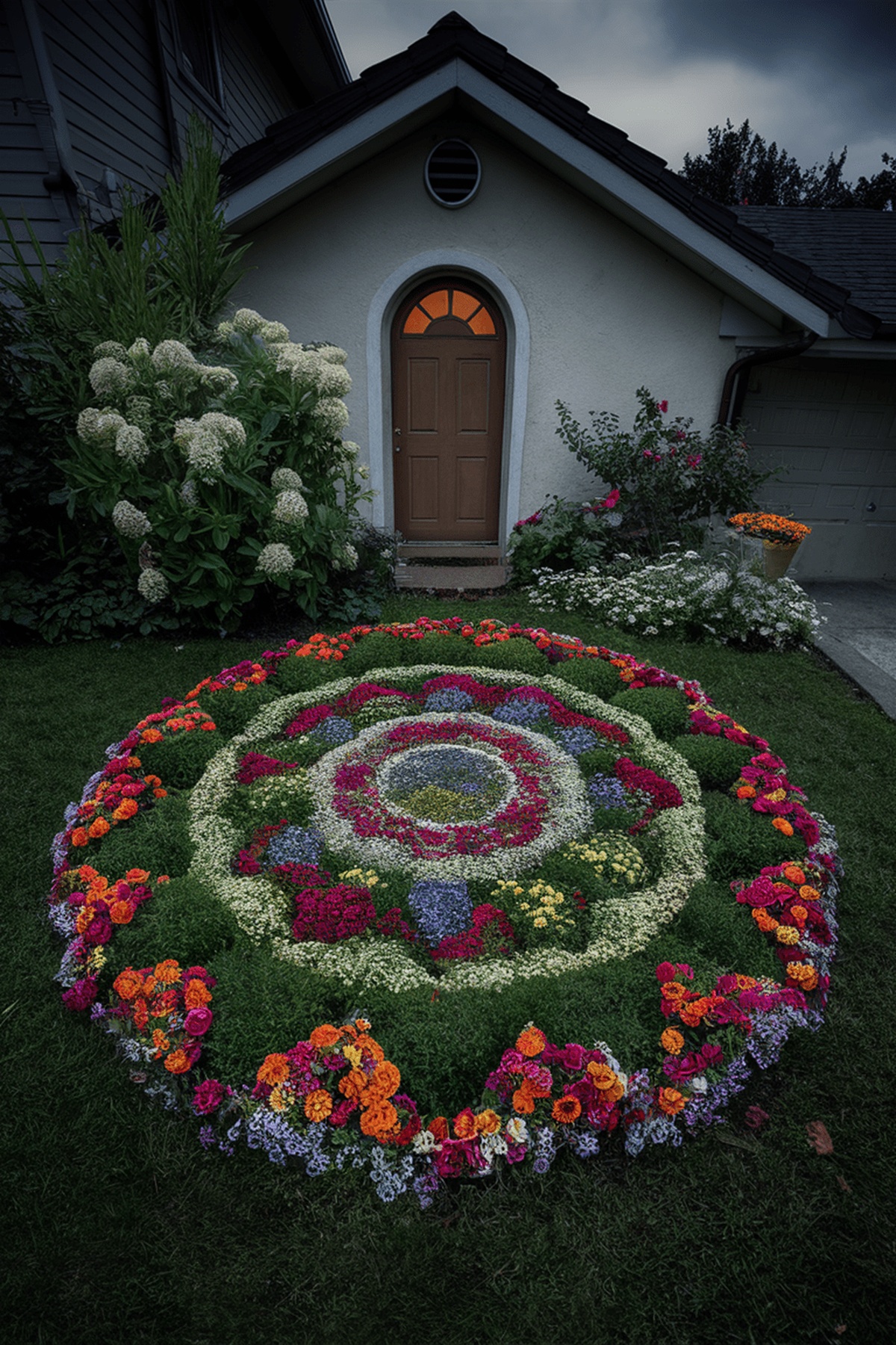 A mandala-shaped flower bed adds a spiritual touch to any garden.